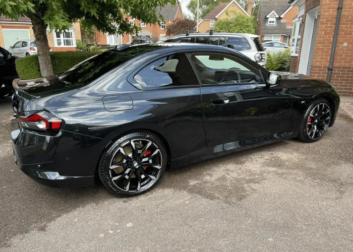 The entire exterior is hand-washed using a pH-neutral shampoo. After a final rinse, we carefully dry the paintwork, wheels, and all finer details to prevent water spotting and ensure a flawless finish. We then carry out a professional machine polish to refine the paintwork and remove any swirl marks or imperfections. All glass surfaces are treated with a hydrophobic coating to improve visibility and create a water-repellent barrier.